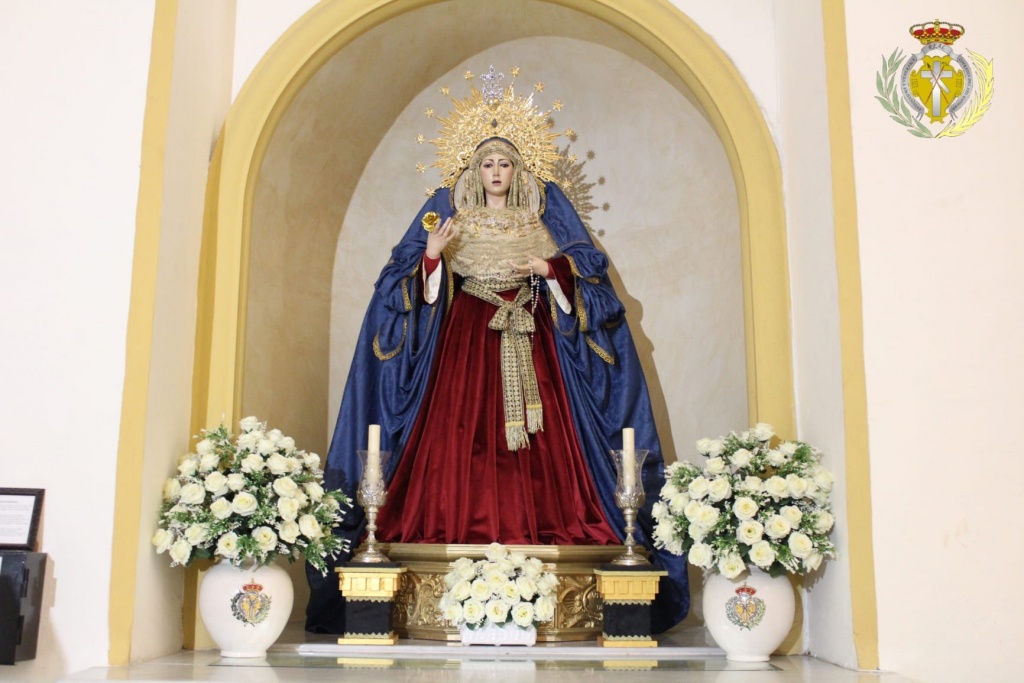 Nuestra Madre de La Soledad amanece ataviada para la inminente llegada del adviento con los colores Inmaculistas.
